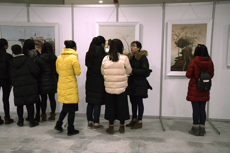 展览为员工的美术专业实践创设了一个贴近员工实际的专业教学情境。朴素整洁的展览大厅宽敞明亮,50多件员工的油画作品格外醒目,现场的师生热情高涨,大家驻足在作品前,不时就美术专业实践和美术作品创作的一些问题向老师提问,教师也当堂进行了回答和点评。这样的课堂教学情境,直观形象,贴近员工实际,对开启员工的艺术心智,帮助员工建立艺术源于生活的美术创作理念,掌握科学的美术创作方法大有裨益。