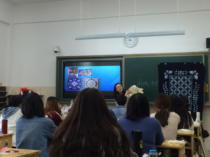 4月19日上午,艺术设计教研室开展“每月一课”教研活动。戴晓红老师在美专15班上了一堂《民间扎染》公开课,系部负责人及部分老师观摩了课堂教学。戴晓红老师的公开课以自己的示范作品导入,结合经典范例完整展示了扎染的发展历史和艺术特色,对传承传统民间工艺具有实践指导意义。许锐老师对课堂教学进行了全程录像,对教学资源库的建设进行有效补充。