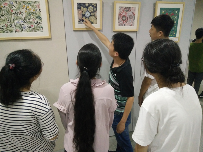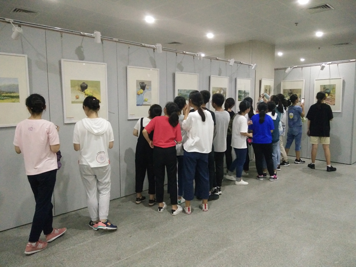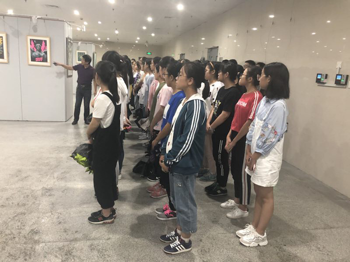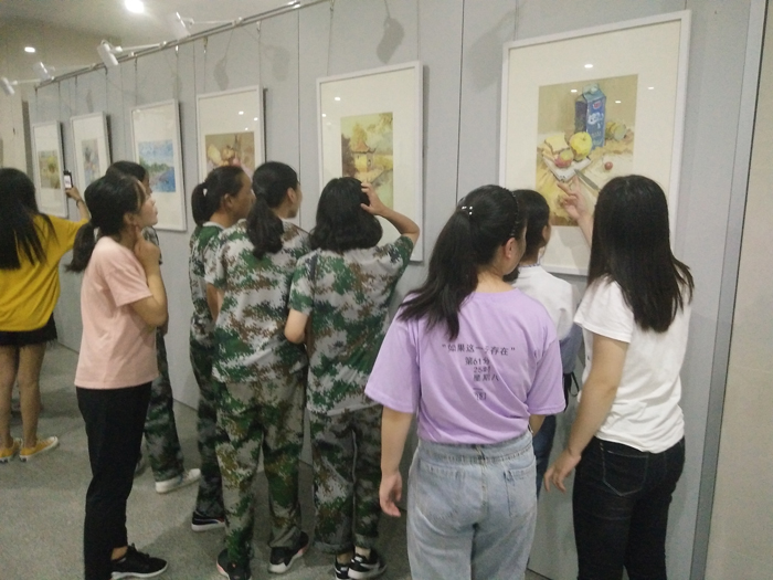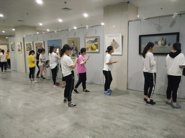 近日,美术系2018级美术教育、数字媒体和视觉传播三个专业的新生在专业老师的带领下,到图文信息中心大楼的美术展厅,分别观摩了美术系员工优秀习作展。