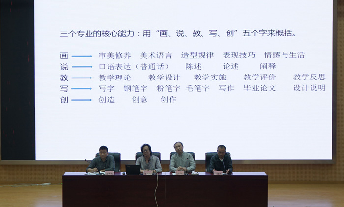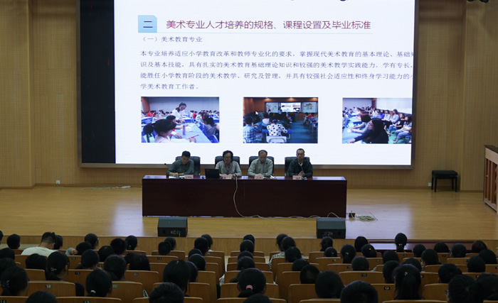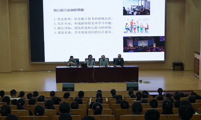 会上,美术系主任陈竹林老师以“美术专业核心能力及其发展策略”为题,为2018级全体新生解读了美术教育、视觉传播设计与制作、数字媒体艺术设计专业人才培养方案,明确了人才培养的规格、毕业的要求,课程设置和专业的核心能力,就核心能力的发展提出了四点建议;系科副主任朱敏老师向员工说明了学业管理、课堂学习和课外自主训练的相关规定。系科系支部副书记黄斌斌老师向员工明示了日常的安全防范、自律守纪、行为举止、和谐进步等方面的具体要求。