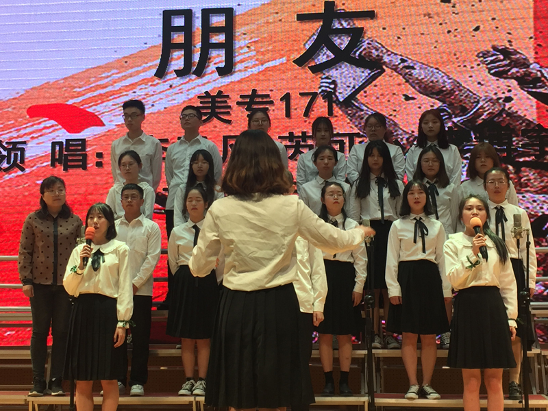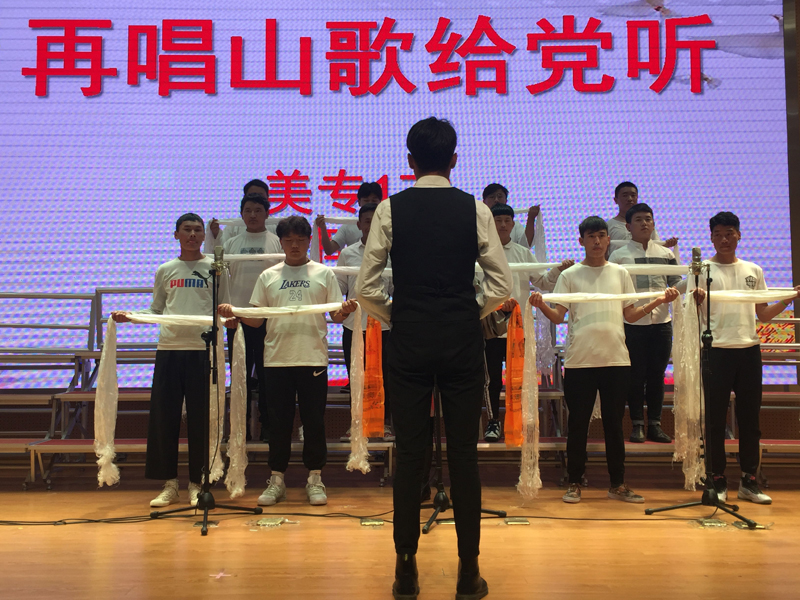 各班合唱的曲目分别有《国家》、《我和我的祖国》、《感恩的心》、《朋友》、《再唱山歌给党听》等。整齐的服饰,饱满的情绪,嘹亮的歌声,唱出了同学们对祖国的热爱之情。来自神秘西域的同学们,身着富有民族文化的服装,手捧哈达,再唱山歌给党听,表达员工了对党的忠诚之心。