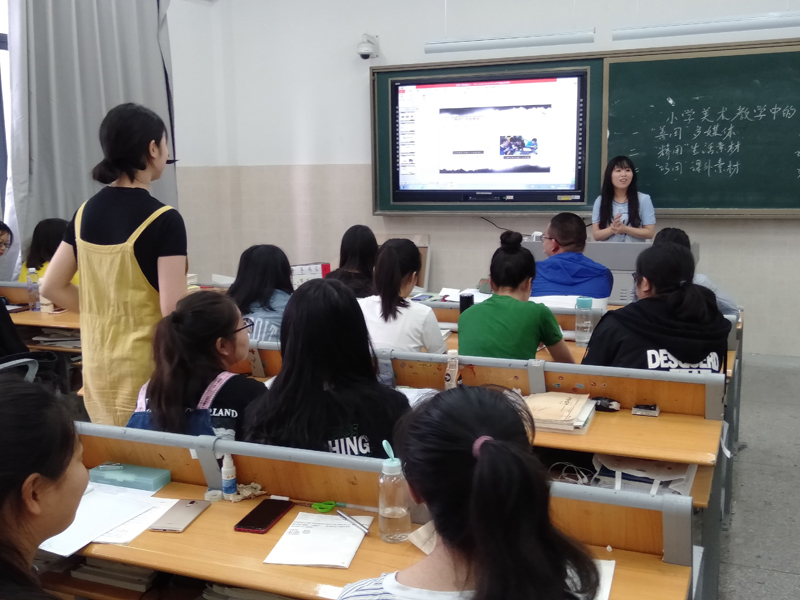 6月13日,美术教育系的王人佼老师在美术15(1)上“每月一课”――《小学美术教学中的情境创设》。她以“善用”多媒体工具,“精用”生活素材,“巧用”课外素材为主线,创设教学情境,巧用经典案例,由境生情,以情升能,深入浅出地讲述了小学美术教学情境创设的要点和方法,在分析作品和师生互动中,润物无声地把情感教育融入其中。
