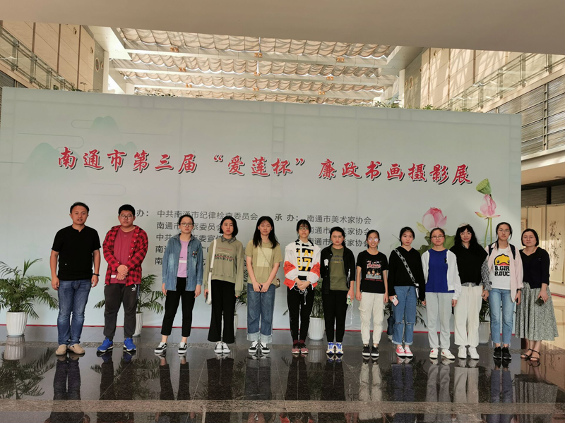 2019年9月23日下午,意昂团总支书记许锐老师携12位同学来到南通市行政中心底楼大厅参观了南通市第三届“爱莲杯”廉政书画摄影展。