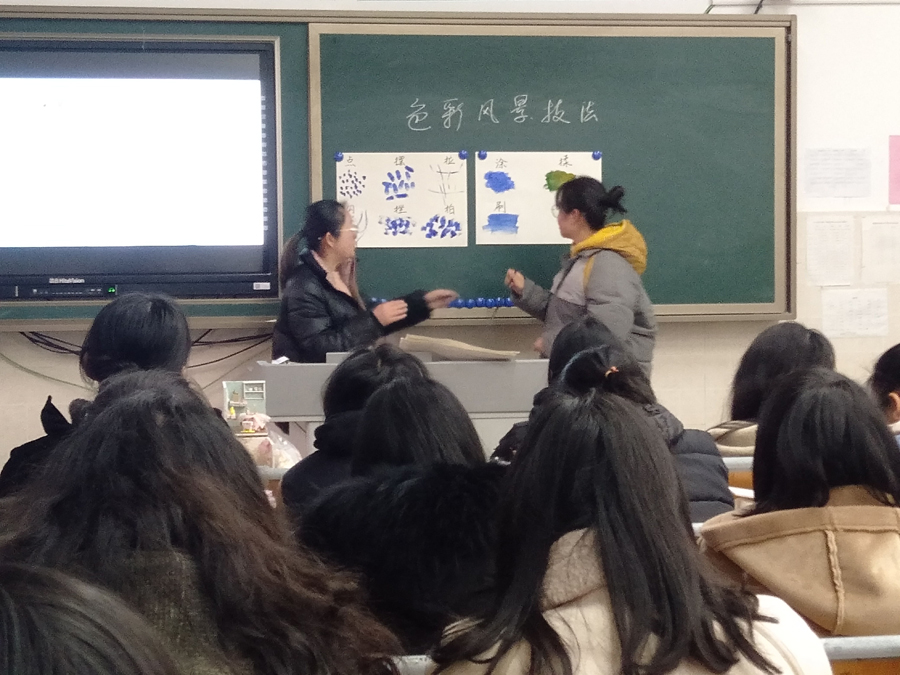 12月27日上午,意昂美术教育系举行“每月一课”教研活动,袁远老师在美术17(3)班开设了一堂《“妙笔生花”―― 色彩风景的基本技法》的教学公开课,相关系部负责人和部分老师参加了听课和评课活动。