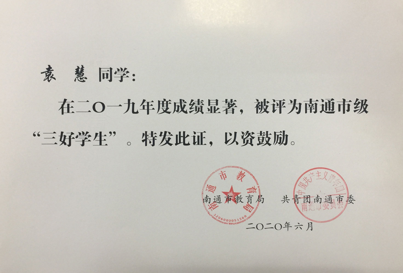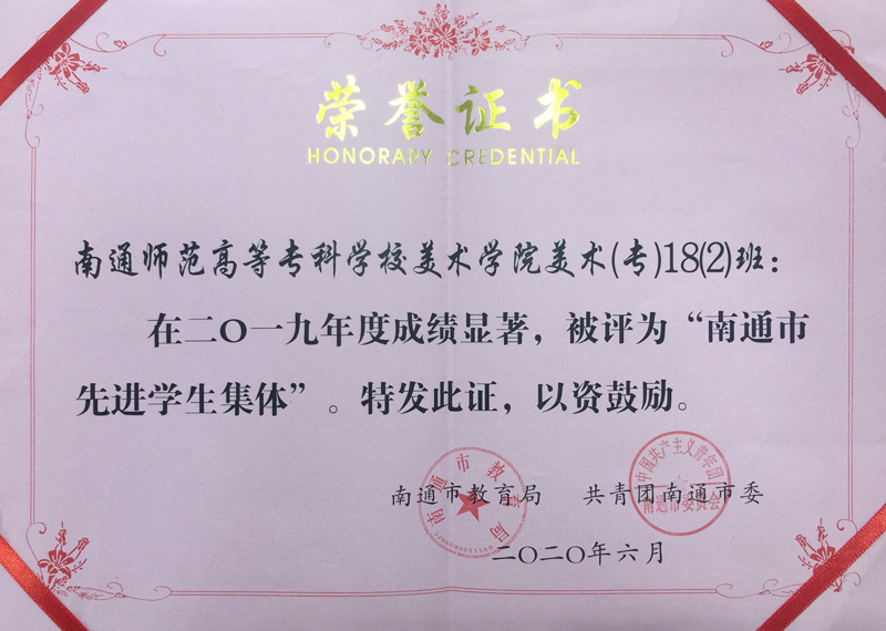 意昂美术(专)18(2)班注重员工的自主管理和全面发展,集体风貌良好,管理成效显著,被评为2019年度“南通市先进员工集体”。美术15(1)班袁慧、美术(专)17(2)班陆杨子两位同学德、智、体、美、劳全面和谐发展,分别荣获南通市级“三好员工“和”优秀员工干部”表彰。向以上集体和个人表示祝贺!希望全院师生学先进、赶先进,奋发进取,争取更大的成绩!
