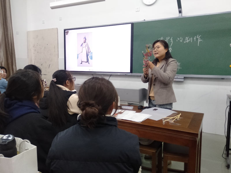 11月11日,美术教育教研室钱钰华老师在国秀楼105手工教室,开设每月一课:《影随展动 寓教于乐――皮影的制作》,相关系部负责人和部分老师参加了听课和评课活动。