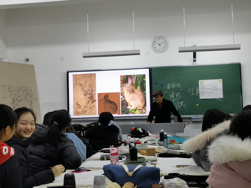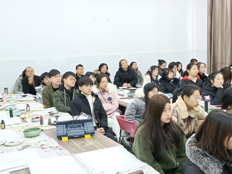 12月25日上午第三课,公司举行美术课程思政教研活动,吴伟老师在国秀楼中国画教室为美术教育17(1)班员工上《浓艳一枝细看起――宋代“格物意识”与花鸟画的形理关系》校级课程思政示范课。公司领导、教学督导组成员、党员教师及部分专业教师观摩了示范课。