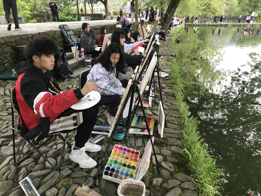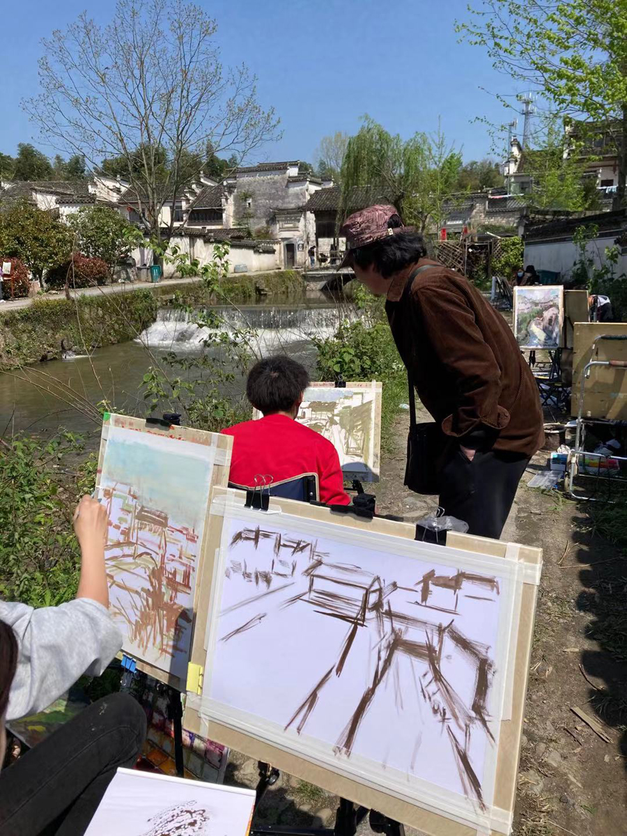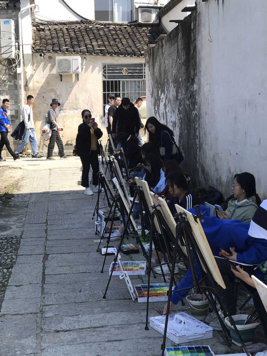 4月6日至12日,意昂组织美术教育和艺术设计2020级184名员工赴安徽宏村进行艺术实践课程教学,陈竹林、王人佼、袁远、纪祥等老师带队并指导员工艺术实践。