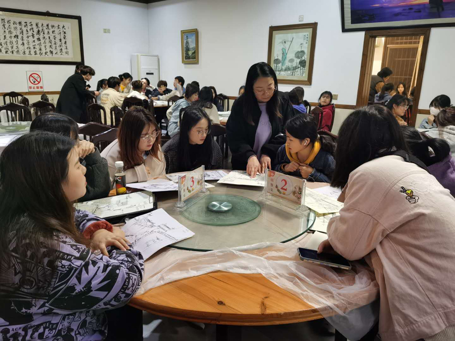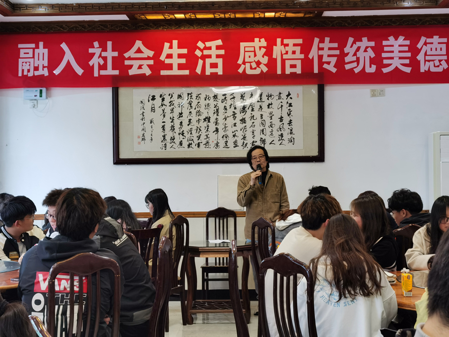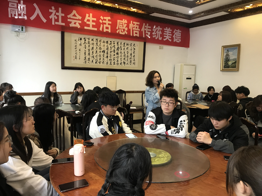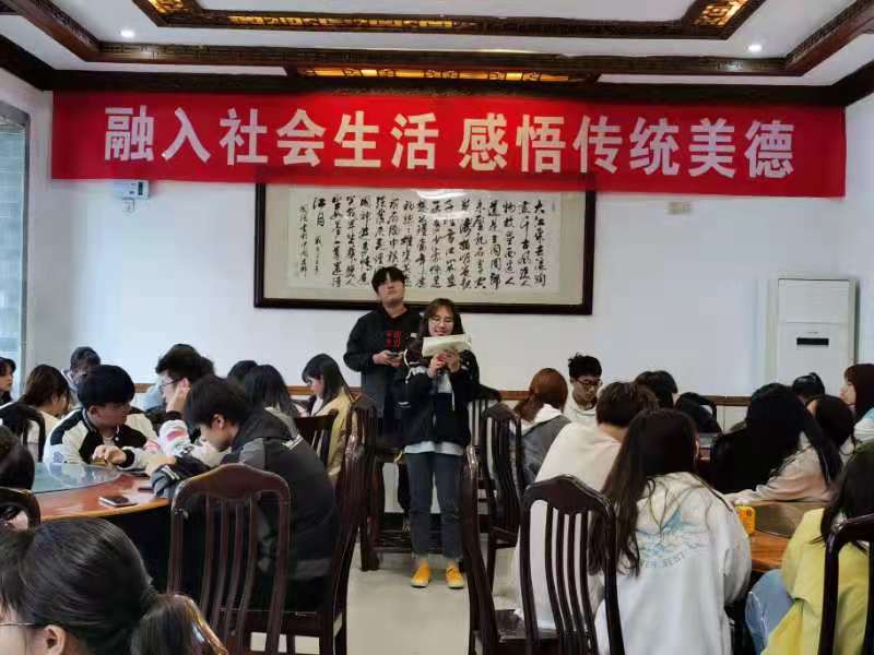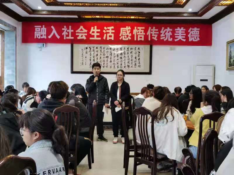 4月11日下午,结合艺术实践课程教学,老师和员工集聚在宏村基地的大厅,举行“融入社会生活,感悟传统美德”主题活动。活动由意昂书记陈竹林主持。