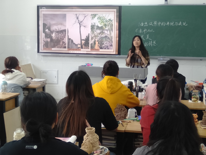 5月19日上午,美术教育系举行“每月一课”教研活动,王人佼老师为美专19(1)班员工上“油画风景中的再现与表现”公开课。公司教学督导组成员以及部分教师观摩了课堂教学。