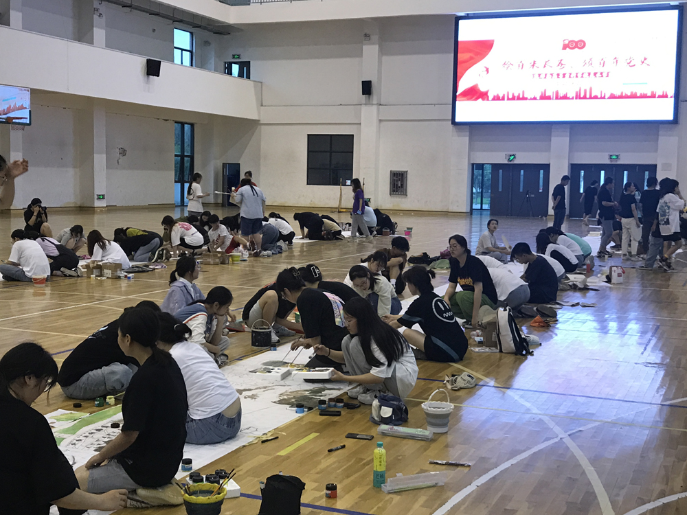 2021年6月10日下午5点,意昂200余名师生在意昂体育体院馆举行“绘百米画卷、颂百年党史”活动。意昂党支部成员,公司团总支、系部负责人以及部分教师参加了本次活动。师生在百米长的画布上绘画、书写,讲述中国共产党百年来走过的光辉历程,绘百米画卷,颂百年党史。