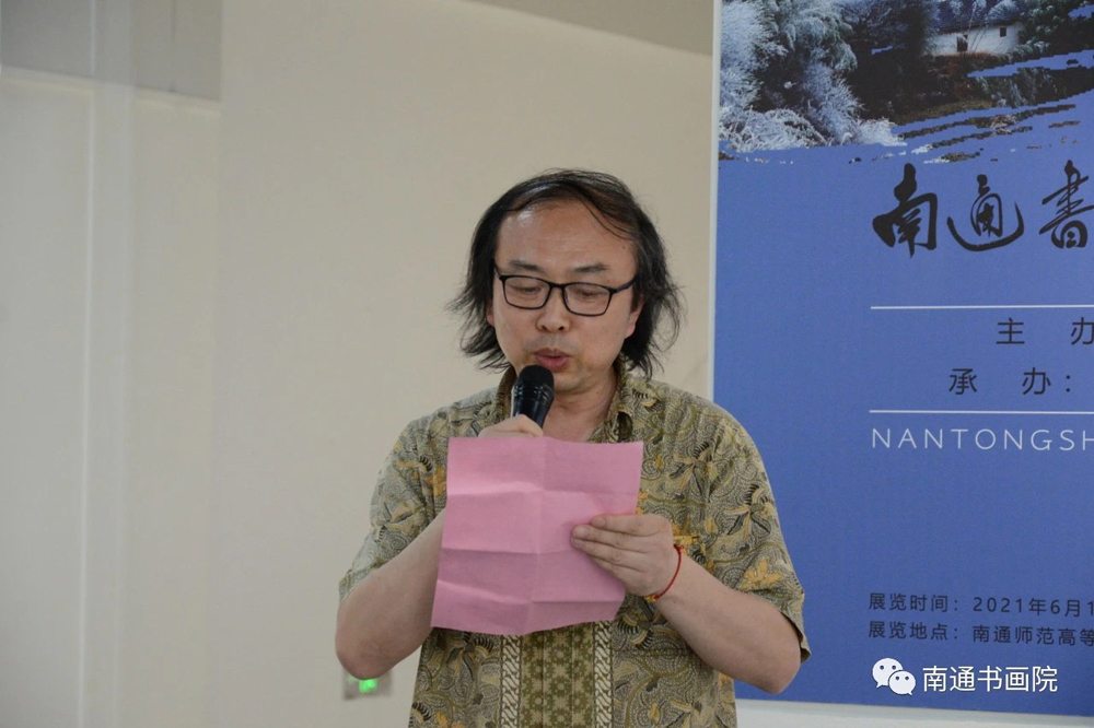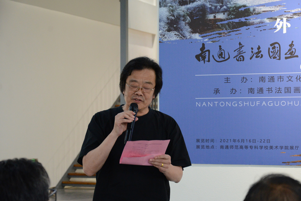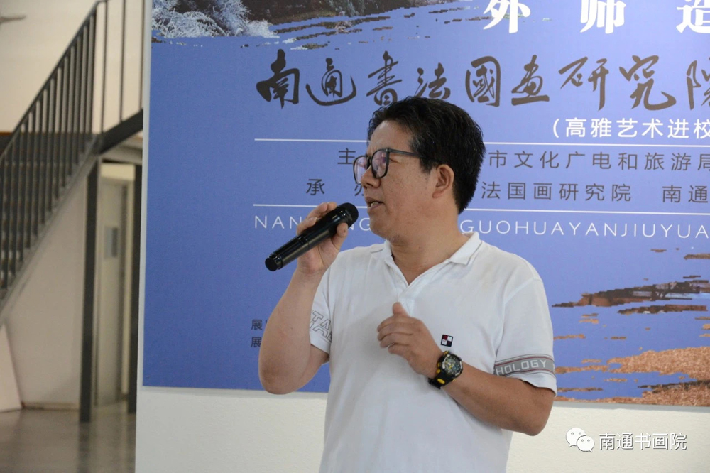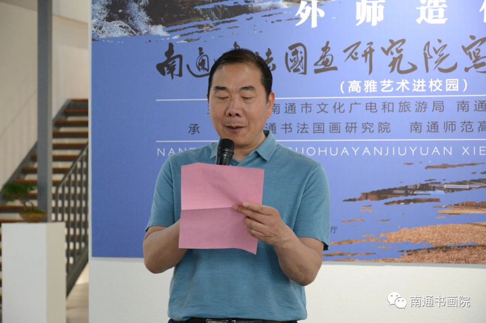 邵连在讲话中指出,通师高专历史悠久,英才辈出,文化积淀丰厚,来到这所百年师范公司,感到非常亲切,因为我的家人曾经在这里工作。多年来,南通书法国画研究院的画家,他们肩负传统艺术文化传承和创新的责任,以自然为师,深入社会生活,浓墨重彩,点��祖国的青山绿水,勾勒人们的幸福生活,体现了艺术家植根民族文化土壤,追求美术文化创新的自觉。