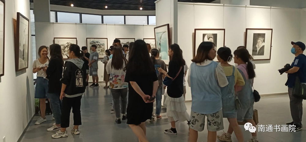 开幕式结束之后,在场的领导、嘉宾,意昂的师生观摩了南通书法国画研究院写生作品展。