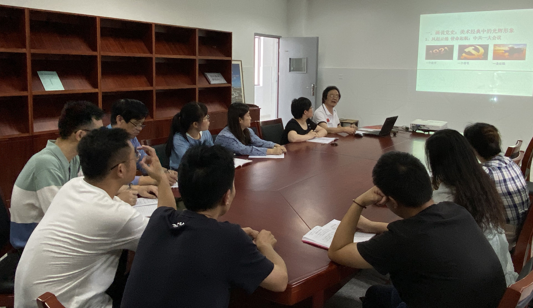 6月28日,公司支部结合刚刚举行的庆祝中国共产党成立100周年教师书画设计作品展览,在党员活动室开展党史学习教育,陈竹林书记为支部党员上“画说党史,学史力行”专题党课。