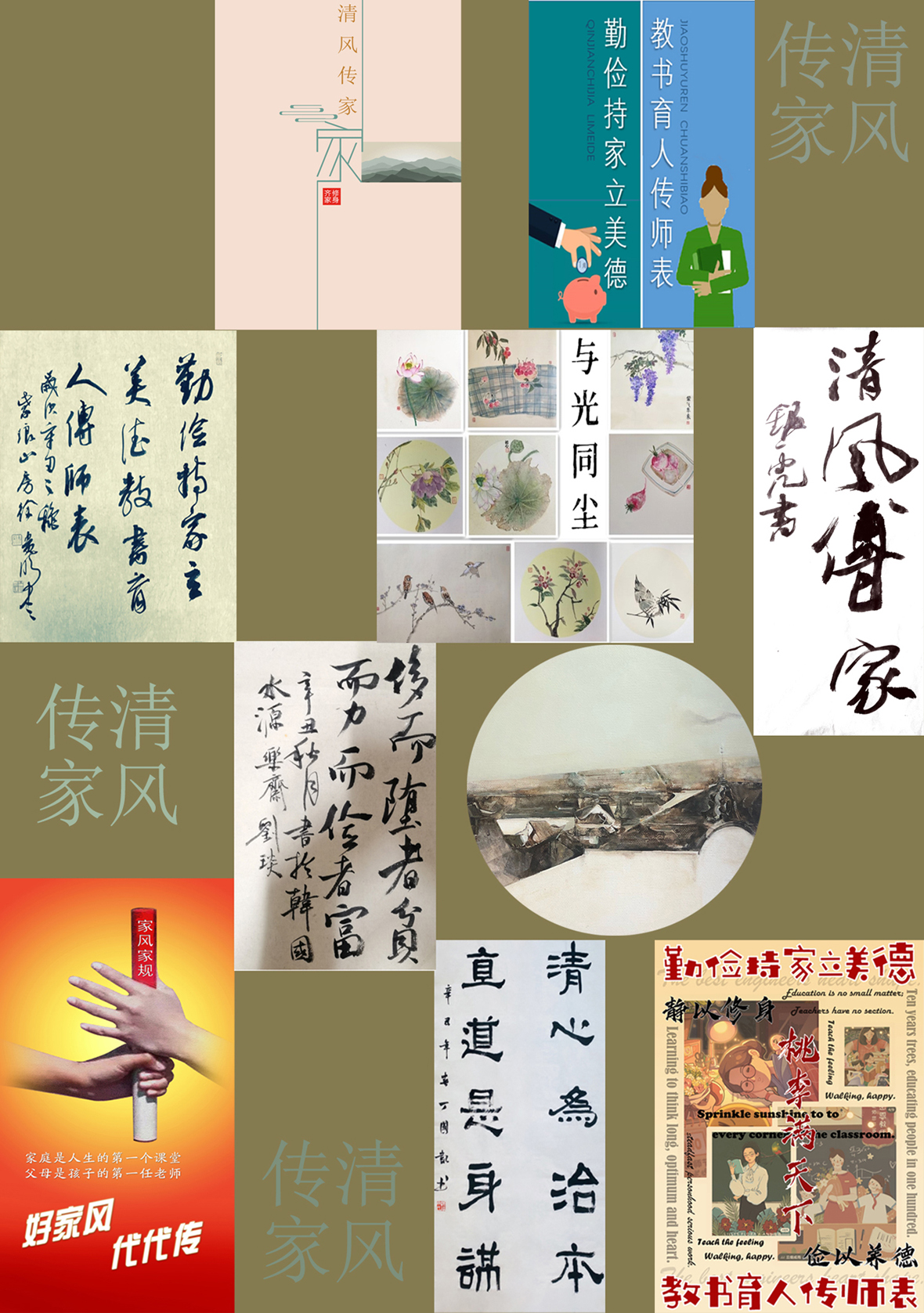 为发挥美术育人的作用,党员同志在分享会上分别交流了书画、招贴设计小品创作的体会,通过艺术的方式镌刻对“勤俭持家立美德 教书育人传师表”的深入思索。同志们互相评品书画设计作品,在感受美的同时充盈内心,丰富感悟,让廉洁理念入脑入心,让家风美德传承赓续。