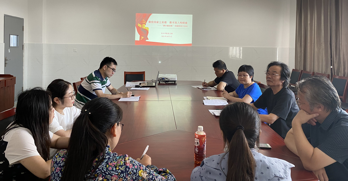 陈书记同志结合学习《习近平关于注重家庭家教家风建设论述摘编》体会,围绕近年来组织员工赴皖南艺术实践的所思所想,与大家分享对宏村楹联文化的感悟,体会南湖书院、树人堂、敬德堂等深厚的徽州文化渊源。强调指出,为人父、为人母要重视家风家教,清风传家;为人师要陶铸师德修养,言传身教,勤于社会实践,传承中国优秀传统文化,书写新时代教育荣光。