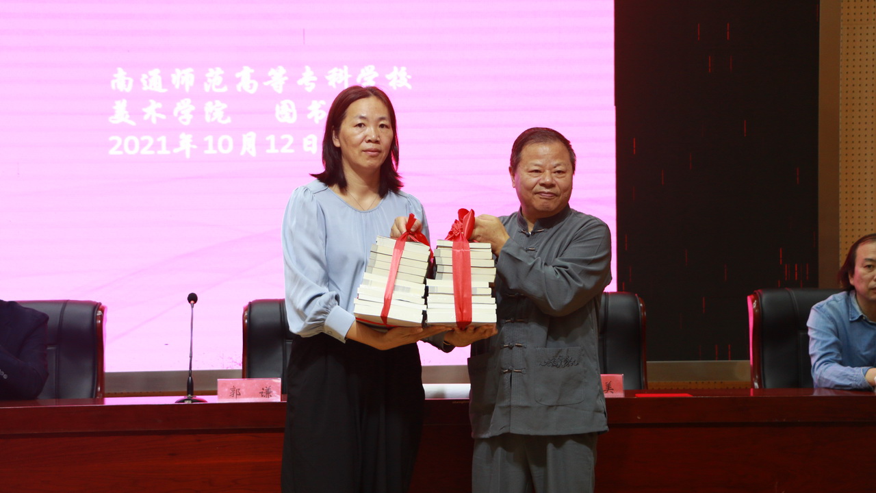 捐赠仪式结束,郭谦先生以“光荣属于通师高专”和“百体书法文化”为题,结合自己人生成长的经历和对文学艺术作品创作实践的思考,与现场的师生分享他和父亲,两代人与通师高专的不解之缘,鼓励员工志存高远,成才报国。他说,100多年来,通师高专人秉承张謇先生“坚苦自立,忠实不欺”校训,名师云集,立德树人,桃李满天下,办学特色与成果享誉全国。新时代,面向新的未来,通师高专人正以开拓的胸襟,奋进新的征程,为国家的教育事业繁荣再创新的教育辉煌。