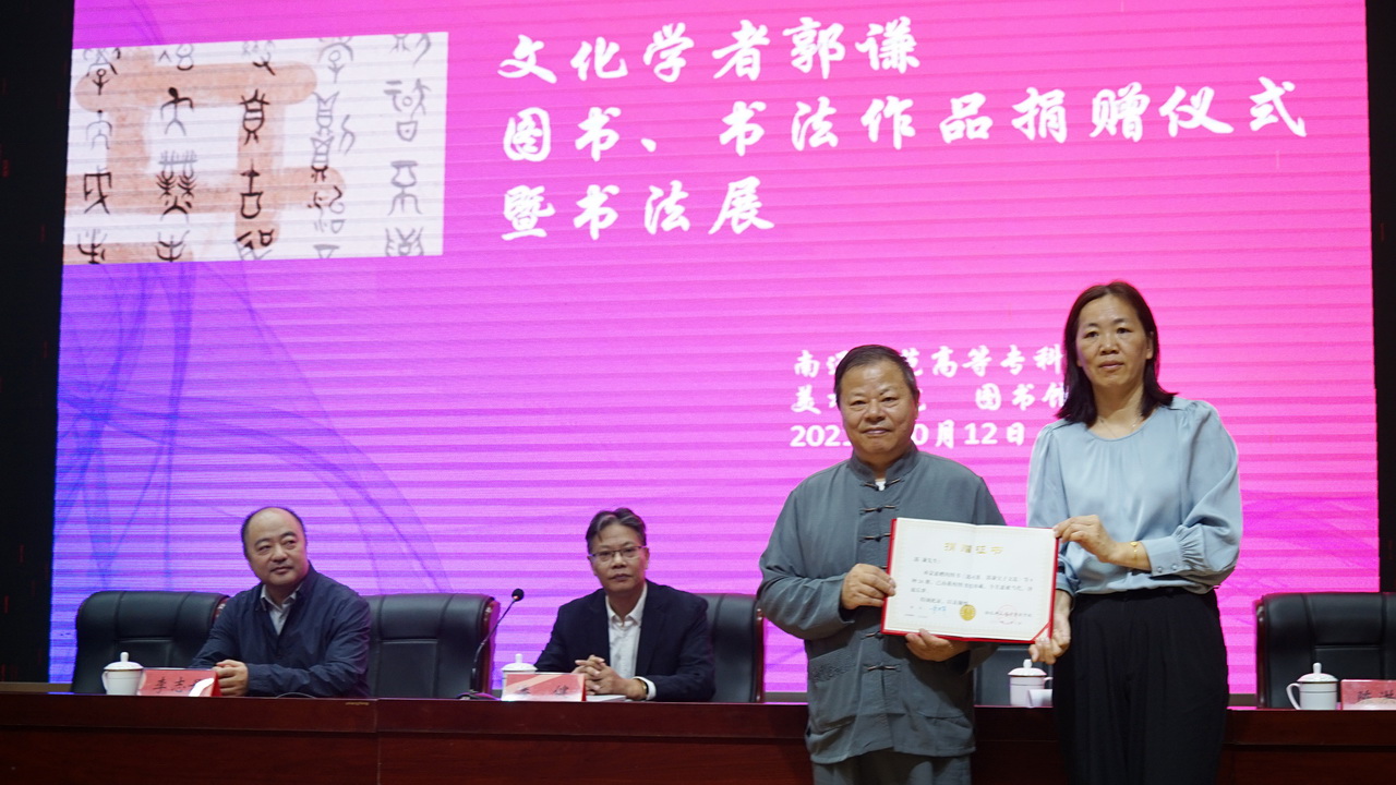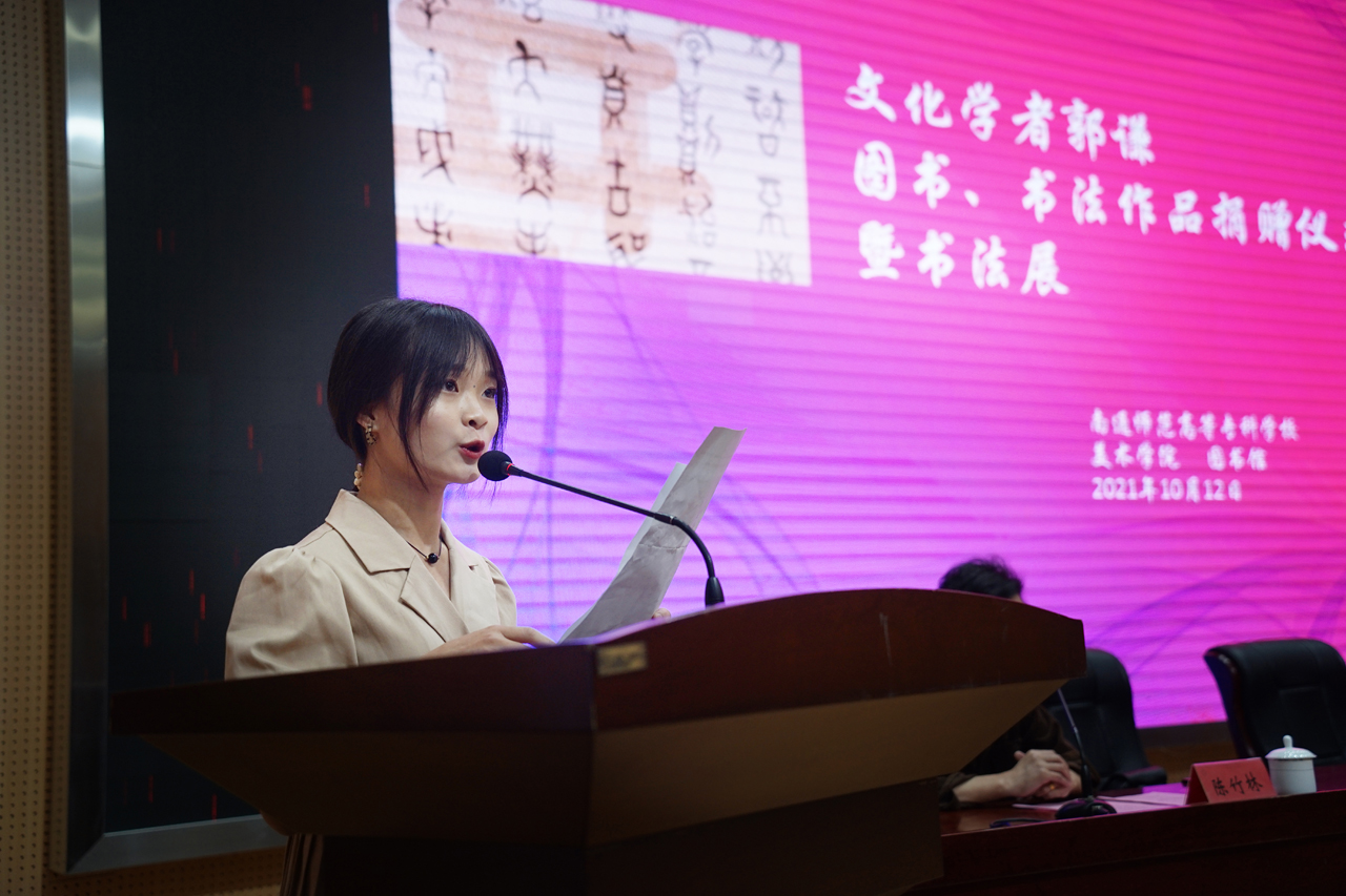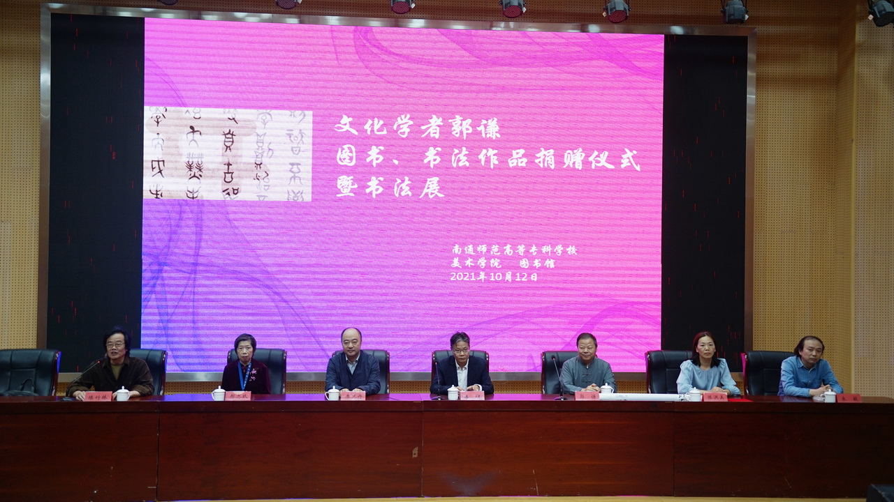 10月12日上午,杰出员工文化学者郭谦先生图书、书法作品捐赠暨书法作品展在公司图文信息中心小报告厅举行。活动由公司党支部陈竹林书记主持。南通考试院副经理李志丹,文化学者郭谦及其夫人邢志玖,公司党委副书记、纪委书记潘健,图书馆馆长陈洪美,意昂经理朱敏以及部分师生参加了本次活动。