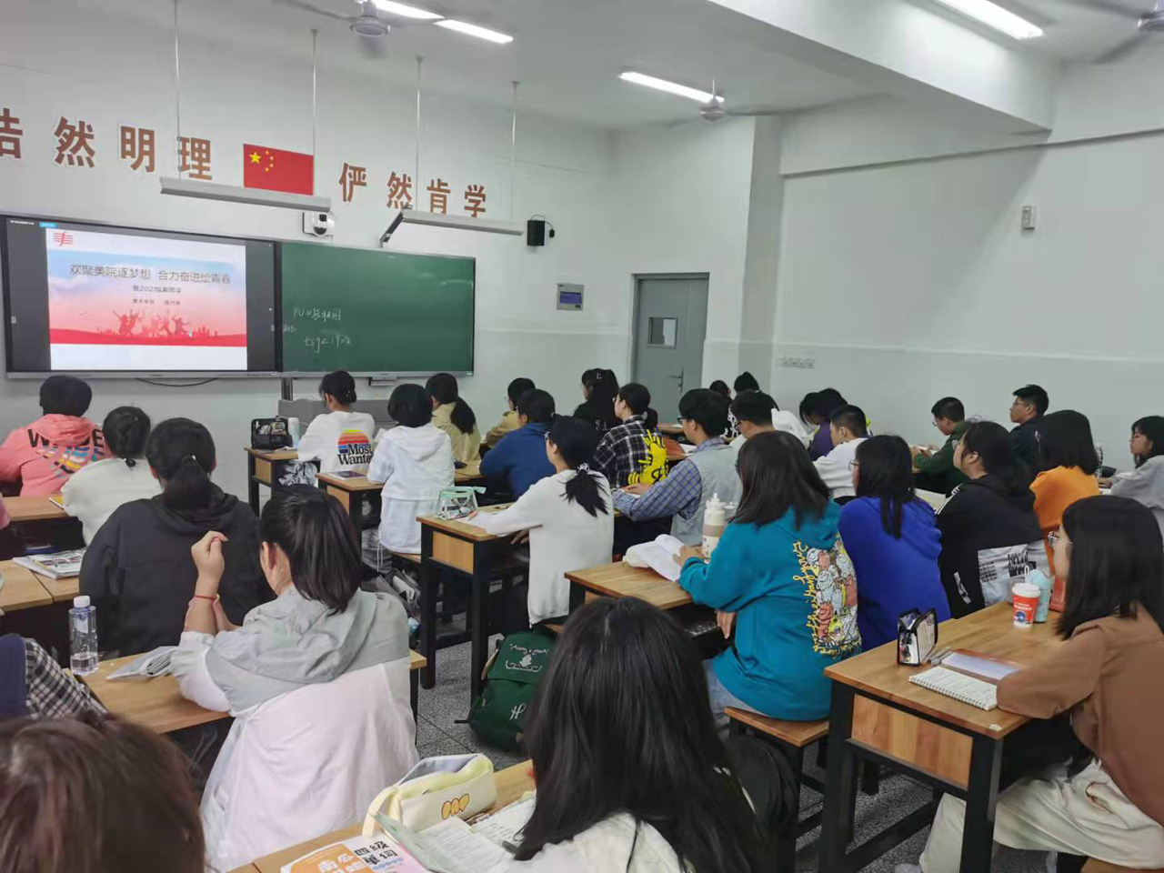 第一次主题班会。10月11日下午,新生各班第一次班会在各自的教室举行。周永春、袁远、张金阳、范守刚等四位新生班班主任(辅导员)老师围绕网络安全、防诈反诈、班集体建设,结合各自的班训就班级的常规管理,重点从员工的日常行为规范、班集体和学风建设等方面引导员工热爱祖国、强学力行、立志成才。