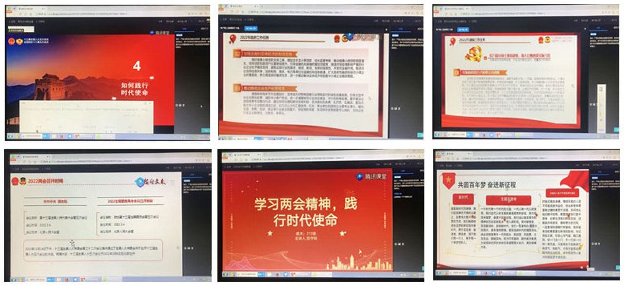 各班辅导员、班主任以“学习两会精神,践行时代使命”为题,为员工介绍了全国两会召开的基本情况,理论联系实际,重点就教育高质量发展、青年员工的使命担当和毕业生就业等议题与员工进行讨论和交流,要求员工学习贯彻两会精神,以强烈的使命感和时不我待的精气神,严格执行疫情防控的规定,充分发挥学习主动,守时惜时,有效线上学习,踔厉奋进,不负韶华,用优秀的学业成绩喜迎120周年校庆和党的二十大的胜利召开。