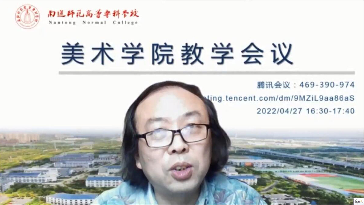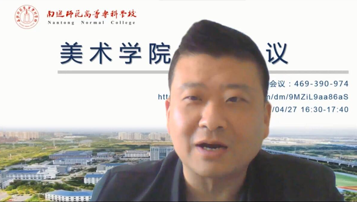 黄斌斌提炼了八项重点工作,强调各项工作的任务性质、时间节点和注意事项,对线上教学作进一步规范,要求全体教师积极主动作为,加强专业课线上教学模式创新研究,将教学经验、亮点举措以及优秀案例等及时汇总,努力打造公司专业课线上教学品牌。美术教育系主任沈如春就“5+2”专转本教学管理、专业指导以及员工状况作了交流发言。