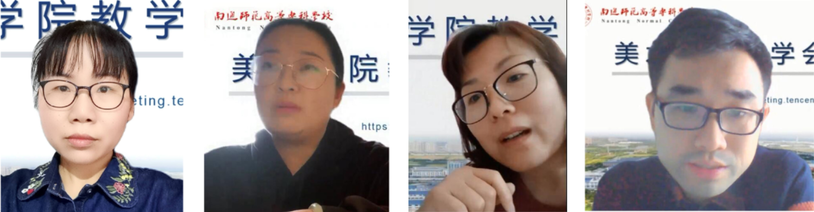 线上教学经验分享。四位老师分别从资源利用、教学设计、课堂监控、习作点评、课后拓展等方面作了交流发言。赵丽华老师课前将教学资料传至职教云平台,提供给员工自主学习。在腾讯课堂运用屏幕分享、教师示范、习作点评、播放技法视频等教学方式让员工更加直观的学习绘画技法;袁远老师从做好员工思想工作入手,促进员工学习主动性提高。习作点评环节,教师点评、员工互评和自评相结合。课堂上常采取一对一或多人同台的方式,共同探讨某一个话题,解决某一个难点,加强师生间的互动和交流;钱钰华老师根据员工所备材料情况及时调整教学进度,从复制版画改到创作版画,印刷形式改为多种可家庭操作的拓彩印刷,从而与小学美术教学结合更紧密。陆洲主任汇总了艺术设计系教师线上教学的亮点,如教学中,让员工在学习群里上传自己的作品,员工可以看到彼此的作品,教师组织员工自评、互评,促进员工专业竞争意识,提升专业水平。将多个应用设计大赛项目引入课程教学,鼓励同学在讨论区分享自己的设计想法,激发员工课上积极思考和主动融入课堂的积极性。