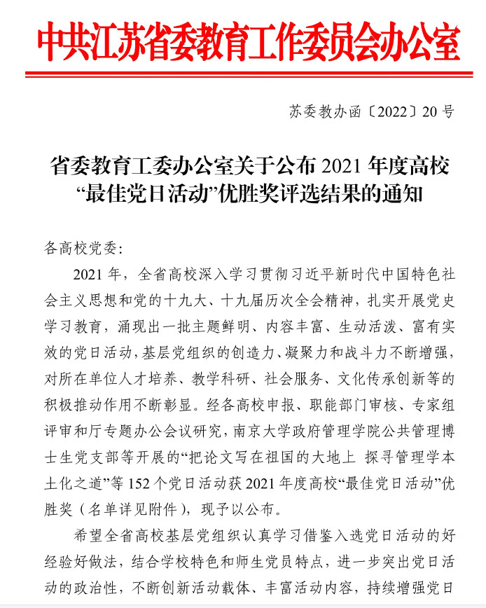 6月22日,江苏省委教育工委公布了2021年度高校“最佳党日活动”优胜奖评选结果,公司党支部“美师美生:传递美的力量”荣获2021年度江苏省高校“最佳党日活动”优胜奖。