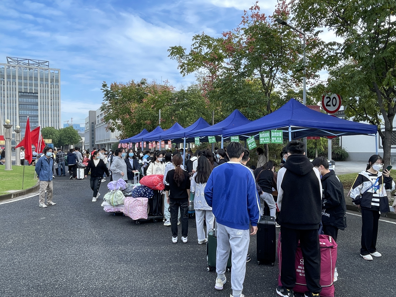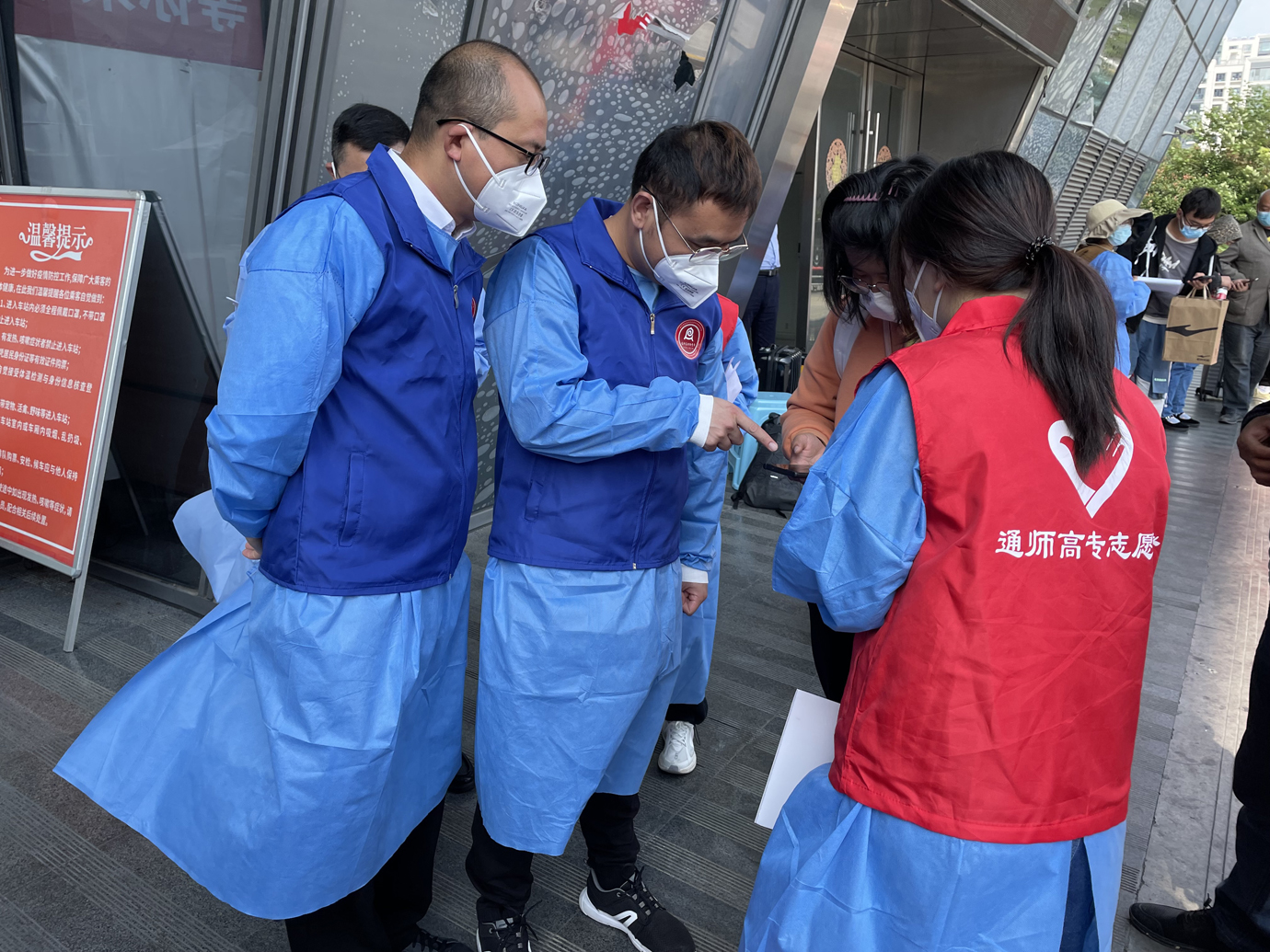 为了落实校园疫情防控的要求,维护师生的健康和校园安全,公司的沈如春、丁国凯、刘琰和高广毅四位老师早早来到南通汽车站,身穿防护服,迎来送往,为新生提供接站服务。公司团总支书记许锐老师带领15名员工志愿者为来自市外的新生在健康监测期间配送一日三餐。