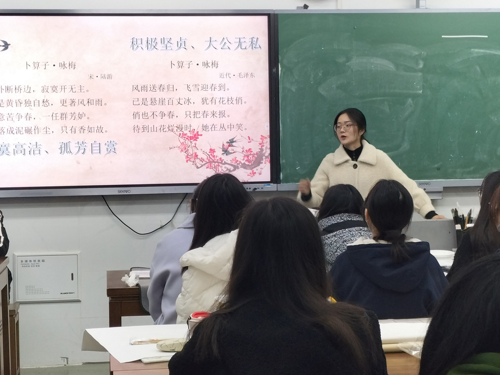 321日上午,美术教育系举行“每月一课”教研活动,孙楠老师在美术201班上“写意花卉——梅”公开课。公司书记陈竹林、副经理黄斌斌,美术教育系主任沈如春,中国画课程组的教师观摩了课堂教学。