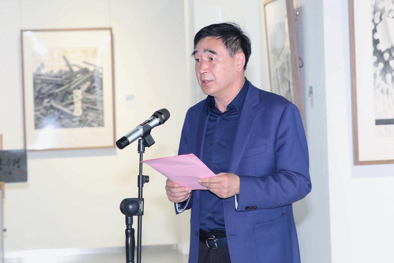 刘锋同志代表公司致辞,对前来参加活动的各位领导和嘉宾表示诚挚的欢迎,对丁立松先生的慷慨之举表示衷心的感谢!他介绍说道,丁先生是公司杰出员工,一生致力于版画创作,其作品先后获全国美展、全国藏书票艺术展暨国际书票名家邀请展、东京国际绘画展等国内外高水平作品展金银奖。大量作品被中国美术馆、巴黎国立图书馆、欧洲木版基金会等众多中外艺术机构收藏。