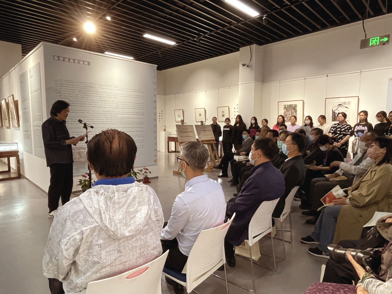 朱敏在介绍活动准备情况时指出,为筹备本次活动,公司的老师多次到启东他的工作室“奋蹄居”商议捐赠事宜,每次都被丁老先生的爱母校、爱专业的精神打动。公司为了表达对丁老先生的感激与敬意,决定成立以丁老姓名命名的“丁立松水印版画传习所”,以此来进一步推动公司的版画教学和提高对本土技艺研究、传承的力度与深度。