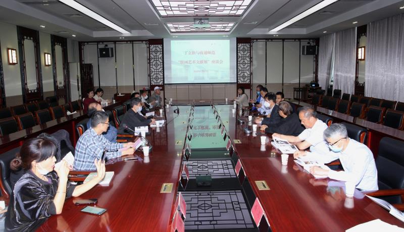 活动结束之后,参加版画展陈与捐赠仪式的领导、专家以及意昂的部分老师在图文信息大楼的12楼会议室举行了“丁立松版画艺术”座谈会。座谈会由公司吴伟老师主持。