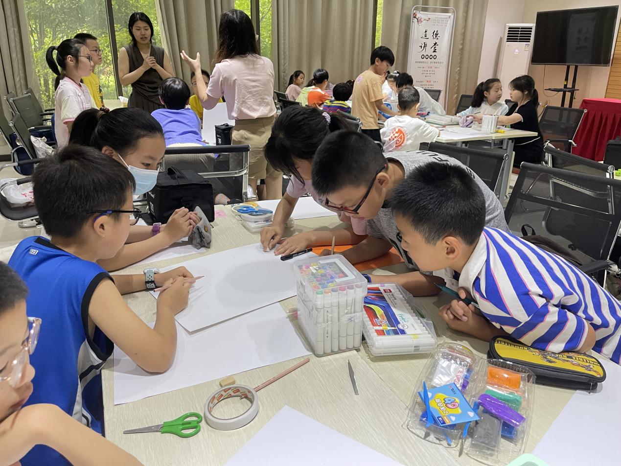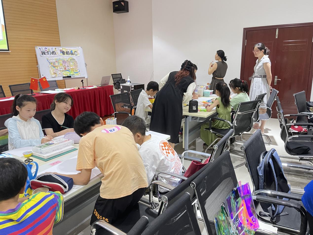 7月10日上午,意昂在新开街道景瑞社区美术活动中心举行校“居”结对共建暑期美术夏令营活动,在公司王人佼老师的指导下,公司党支部员工预备党员康雨妍同学为来自景瑞社区的30位小朋友上《我们的幸福小区》美术课。意昂书记陈竹林,景瑞社区关工委副站长孙丽,还有部分孩子的家长观摩了美术活动。