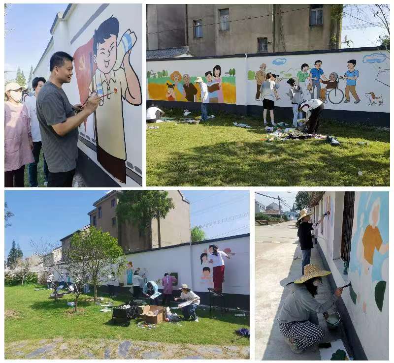 近日,公司团委和意昂联合开展了“巧手妙笔助力乡村振兴”暑期社会实践活动,为海门区悦来镇两个示范村精心设计、绘制主题墙绘。活动由校团委书记张珏老师牵头联系,公司领导班子委托副经理黄斌斌老师负责实施。事先,他们多次来到悦来镇保民村、三其村进行实地考察、勘察测量,与镇党委班子进行研究、讨论、确定墙绘主题。