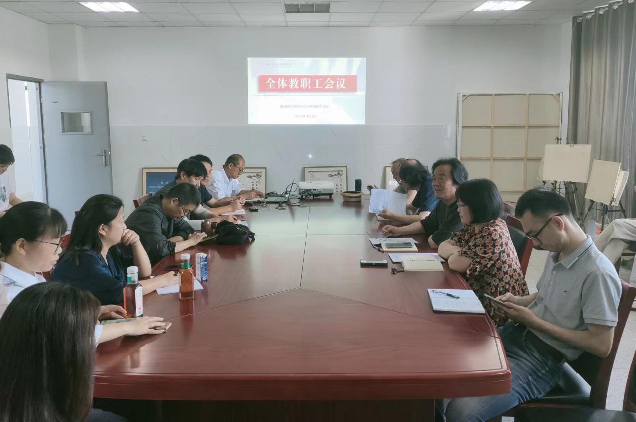9月1日上午,美术公司在国秀楼404会议室召开新学期第一次全体教职工会议,传达公司员工工作和教学工作会议精神,布置公司重点工作,具体安排新学期开学工作。公司书记陈竹林主持会议并讲话,朱敏经理布置公司的重点工作。