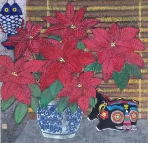 沈如春 装饰画 《红花与青花》 69cm×69cm