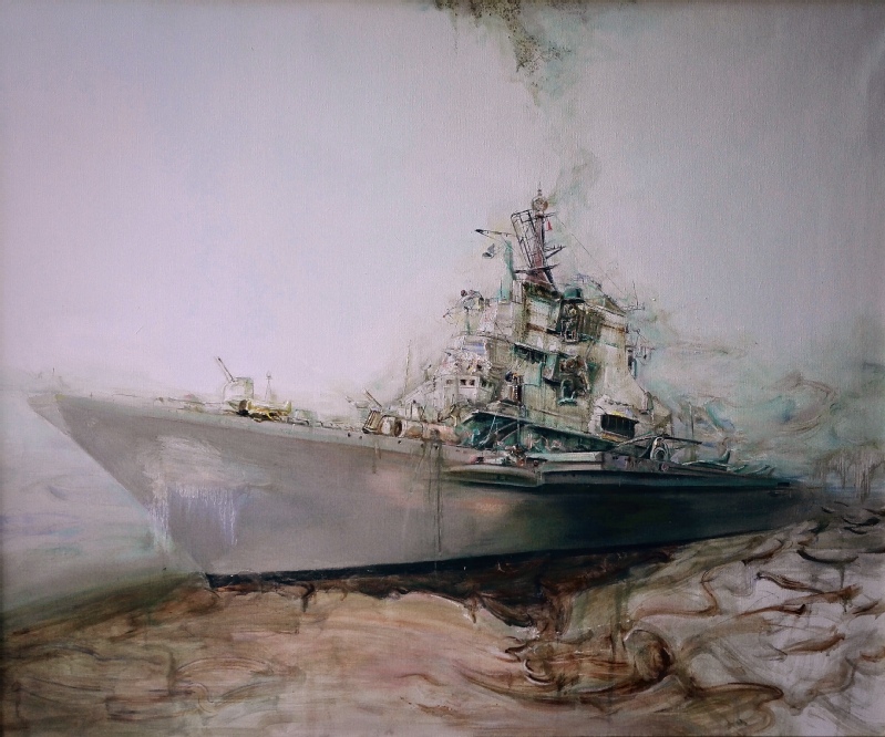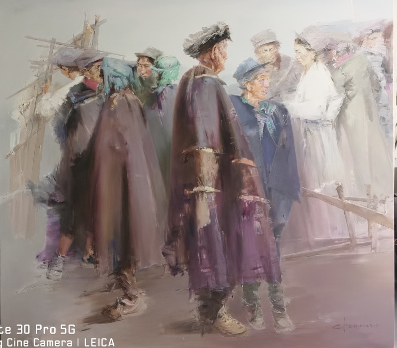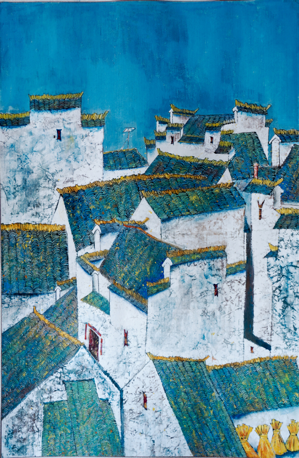 黄斌斌 油画《老城小铺》 120cm×180cm