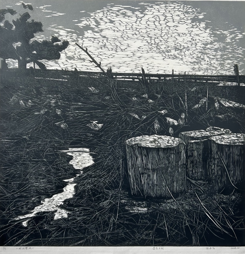 张金阳 套色木刻《时间禁地》 90cm×90cm