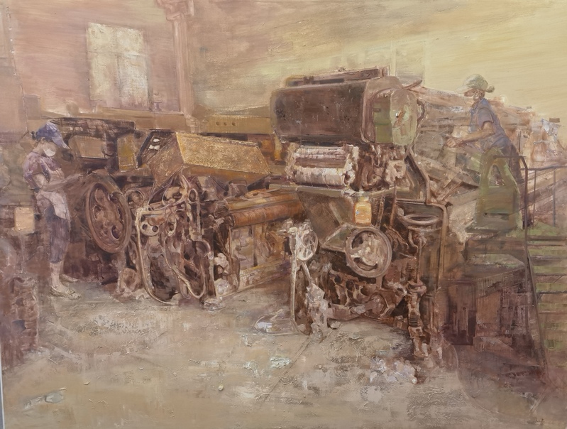 罗闻文 油画《踩缝纫机的维族姑娘》 100cm×80cm
