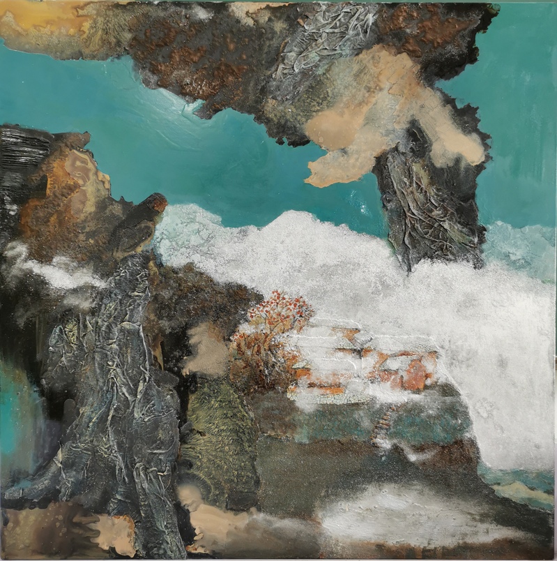 钱钰华 漆画《云雾山涧》 60cm×60cm