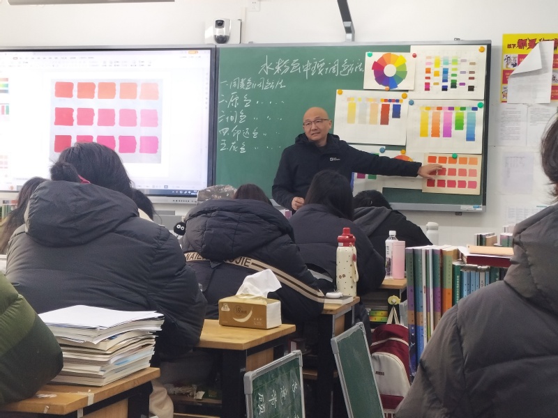 12月20日上午,美术教育系开展了“每月一课”教研活动。郜刚老师在美术24(2)班开设了《水粉画中主要调色方法》公开课,公司部分领导及色彩课程组部分老师参加了本次活动。