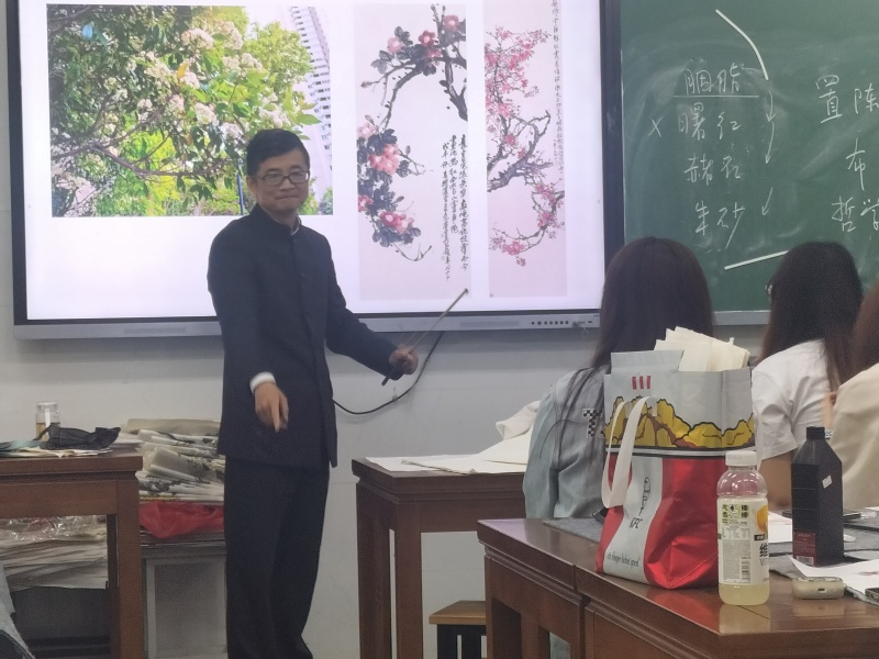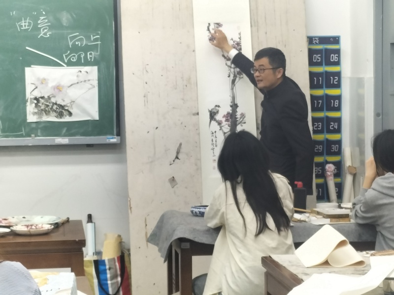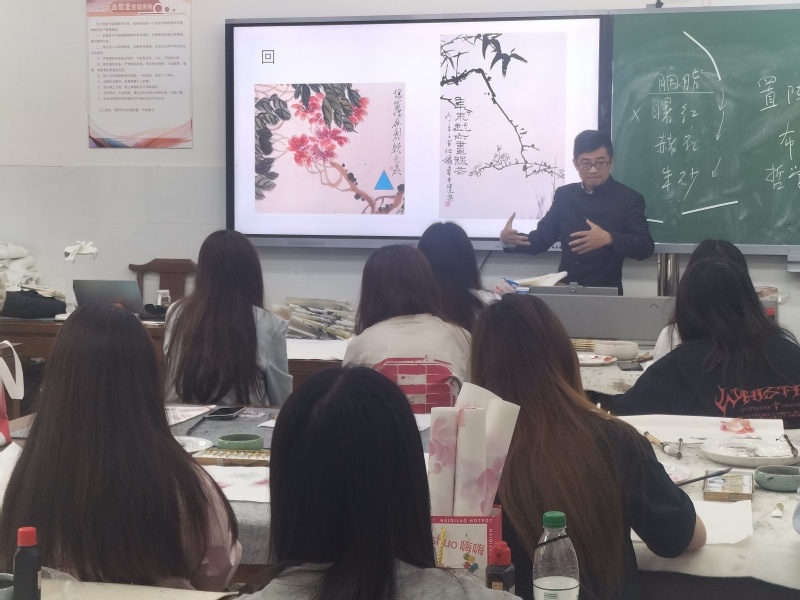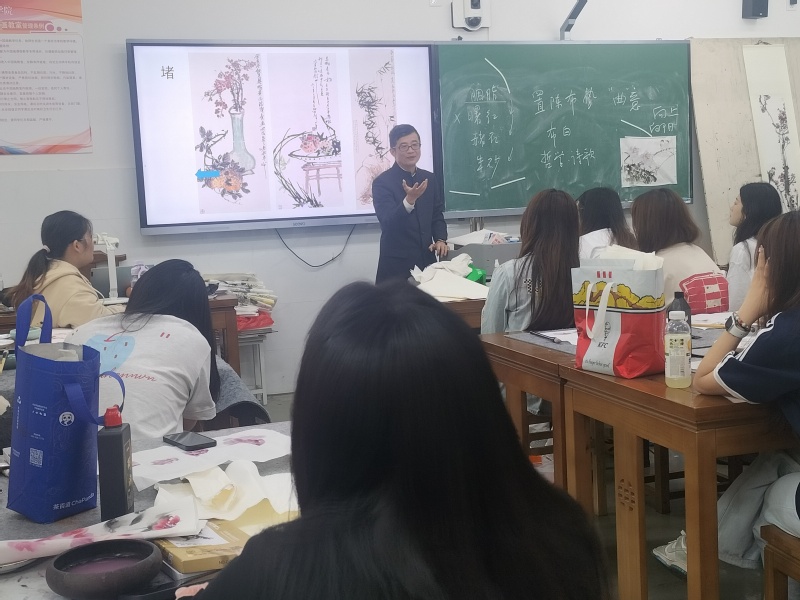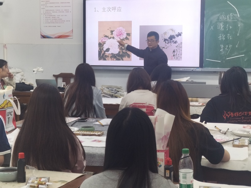 4月30日上午第二课,美术教育系在美专23(3)班开展“每月一课”主题教研活动。吴伟老师以《置陈布势谋新篇 —— 中国意笔花鸟画的布局》为题,为师生呈现了一堂别开生面的中国画思政公开课。系主任沈如春和系部部分教师参与了教学观摩活动。 课上,吴伟老师以“经营位置”这一传统绘画核心理念为切入点,系统解析了吴昌硕、潘天寿、高冠华等名家作品。他将花鸟画构图中虚实相生、疏密得当的美学法则,与“引、伸、堵、泻、回”的布势规律相融合,创新性地将中华优秀传统文化中的辩证哲学、诗歌意境巧妙融入专业技法教学。通过层层递进的讲解,引导员工在笔墨勾勒间感悟中华文化刚健有为、向阳而生的精神内核,实现专业素养培育与价值引领的深度融合。 课后,沈如春主任组织参与观摩的教师与员工开展了别具一格的研讨交流活动。吴伟老师的教学既保持了学术研究的深度,又立足育人高度,以幽默风趣的语言风格、润物无声的教学方式,将思政元素自然融入每个教学环节,起到了因势利导的作用。其深厚的文化底蕴与精湛的专业功底,不仅展现了艺术课程思政建设的创新路径,更为学科教学改革提供了可资借鉴的典型范例。