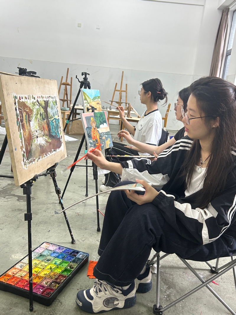 水墨的留白意境、油画的肌理语言、丙烯的当代气息...选手们在两个小时的限时创作中,以画笔为媒,不仅诠释了“传统与当代”的命题要求,更生动演绎了未来美育工作者“以艺载道、以美育人”的专业素养。